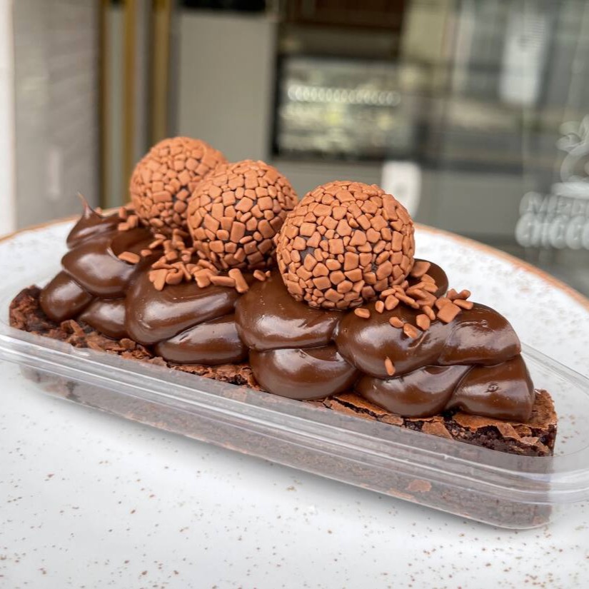 Brownie feito com chocolate puro, e nosso brigadeiro perfeito.