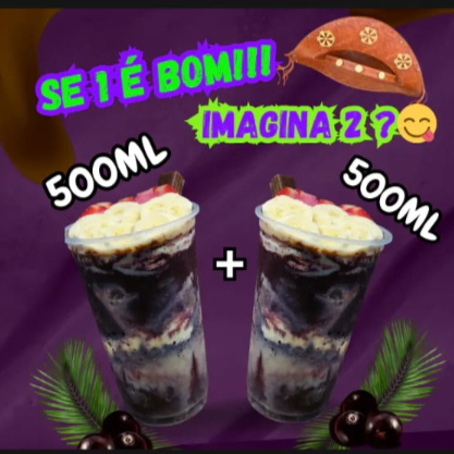 2 Super Copos de 500ml Cada, Recheados de Açaí Com Acompanhamentos da sua Escolhas, Leve essa Delícia Para Sua Casa e Dívida com Quem Você Ama ou Encha o Buchu sozinho