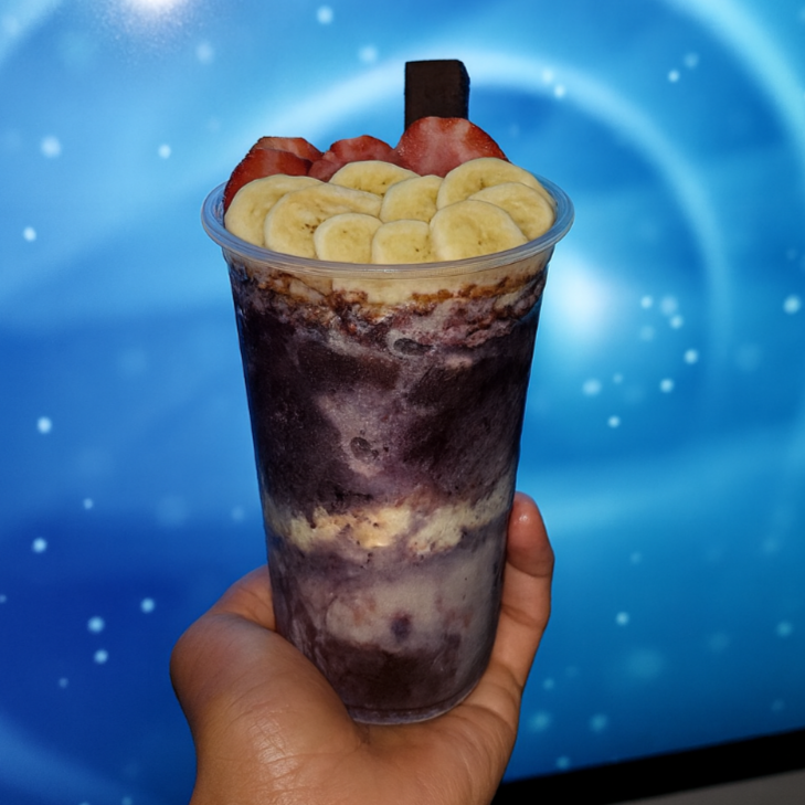 A 'Batida de Açaí 500ml' é uma experiência de sabor inigualável. Cada gole é uma viagem gustativa, proporcionada por uma combinação perfeita de açaí bem fresco, leite condensado cremoso, bananas doces e maduras e leite puro. Preparada instante a instante, com total dedicação e carinho, essa batida é sinônimo de prazer e refrescância. Uma delícia que, além de nutritiva, é repleta de sabor em seus g