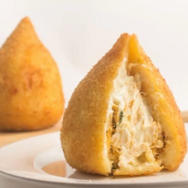 Deliciosa e bem recheada! A tradicional coxinha recheada com frango temperado na medida certa e Catupiry cremoso.