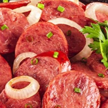 Fatias suculentas de calabresa grelhada e caramelizada junto com cebolas, oferecendo um contraste irresistível entre o sabor defumado e o adocicado das cebolas.
