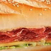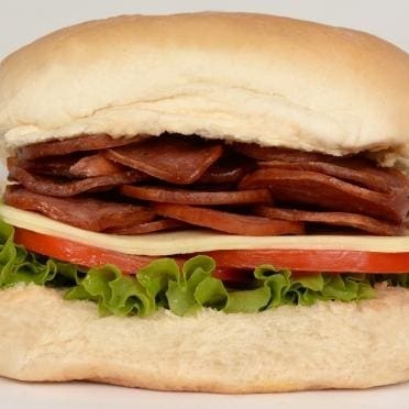 Lanche especial de salame, queijo branco, alface, tomate e maionese.