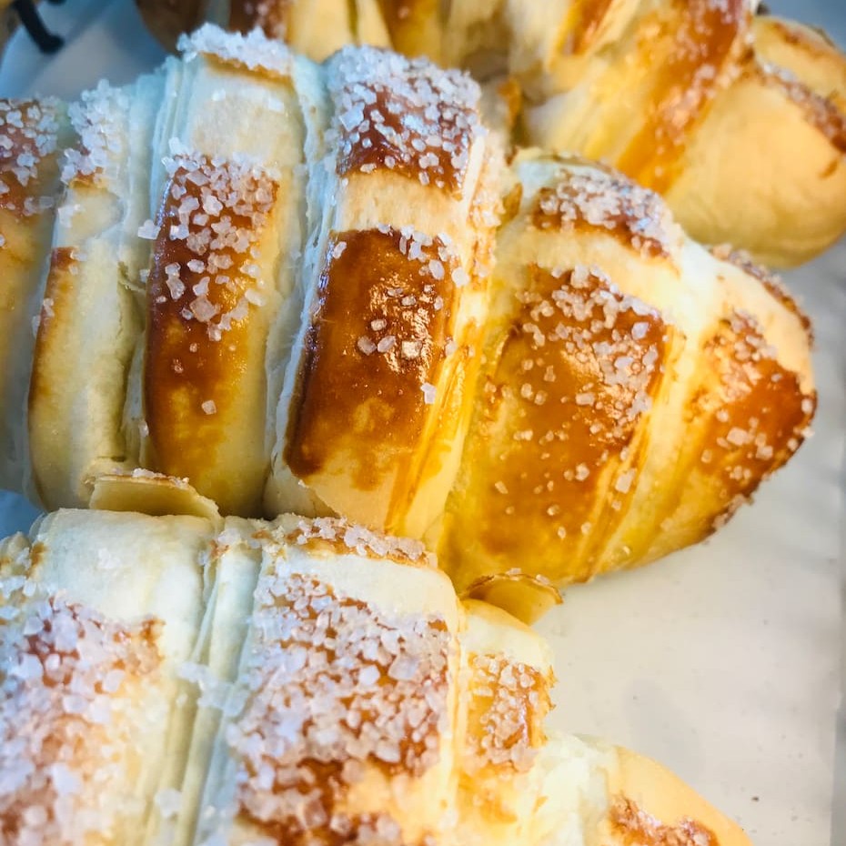 Deliciosa bisnaga simples na chapa com requeijão na entrada.