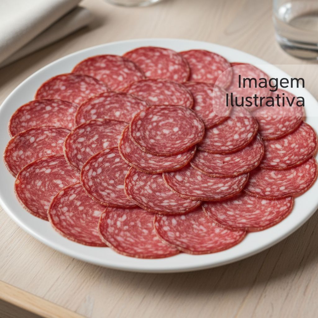 Rodelas de salame italiano autêntico, com sabor intenso e textura firme.