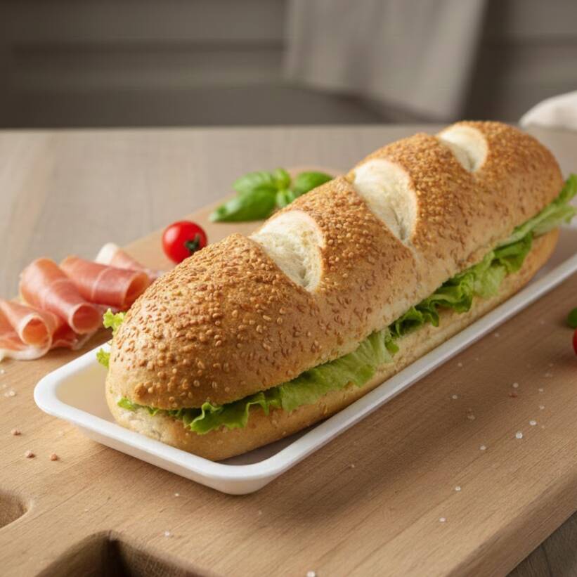 Pão francês, presunto, ovo, alface, queijo e tomate