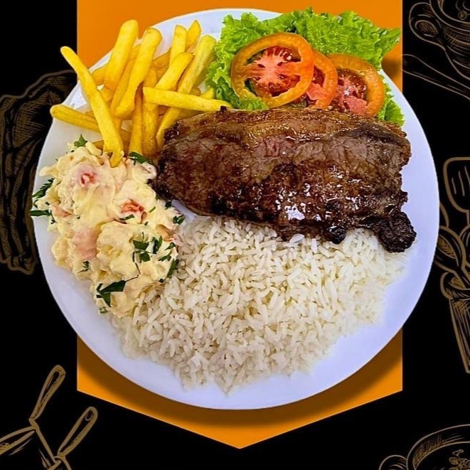 1 filé mignon grelhado. Acompanha arroz branco e Fritas