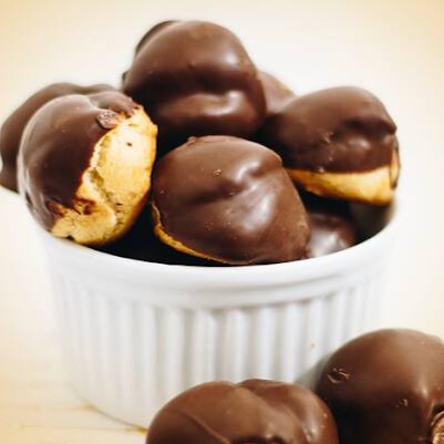 Carolina recheada com doce de leite e coberta com chocolate ao leite. Produto artesanal
