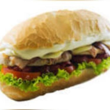 Generosas fatias de presunto cozido, cobertas com queijo mussarela, alface, tomate e molho de maionese e ketchup em pão sírio, acompanhado de batatas fritas fresquinhas.
