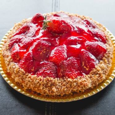 Doce, colorida e irresistível! Nossa torta de morango combina uma base crocante de biscoito, creme de baunilha suave e morangos frescos, finalizados com uma leve camada de geléia brilhante.