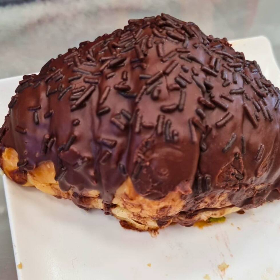 Crocante e dourado por fora, com um recheio cremoso de pistache e um toque sofisticado de flor de laranjeira – elegância em cada mordida!