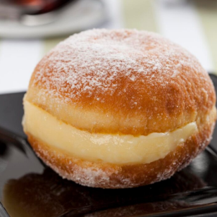 Massa fofinha e dourada, recheada com creme branco, chocolate ou doce de leite e finalizada com açúcar de confeiteiro. Uma nuvem de sabor! ️