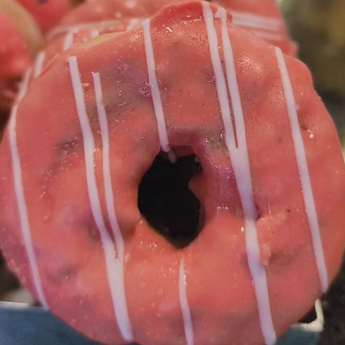 Donut fofinho, recheado com creme de morango e finalizado com cobertura açucarada. Doce, leve e irresistível!