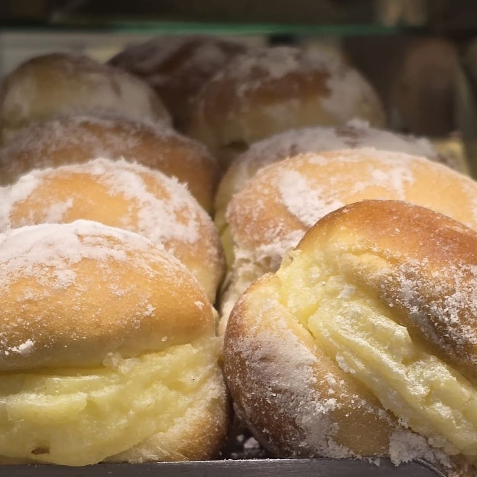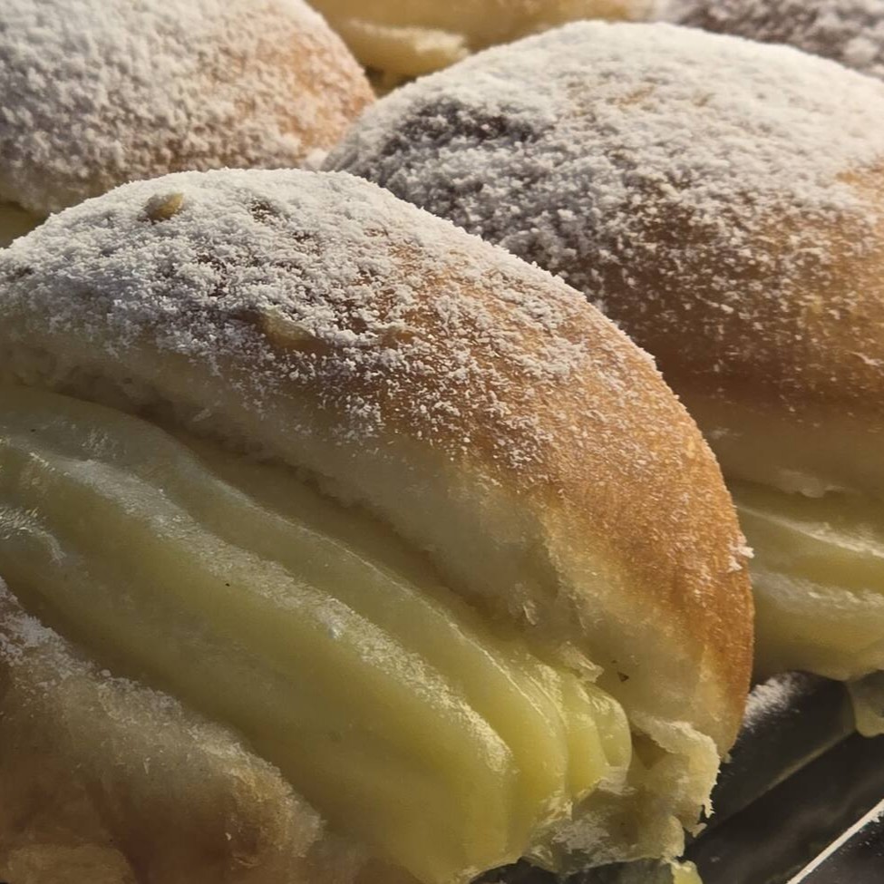 Sonho macio e fresquinho, recheado com creme delicioso e polvilhado com açúcar. Um clássico irresistível para seu lanche ou sobremesa.