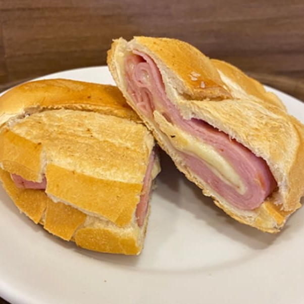 Pão francês com queijo derretido e presunto quentinho, prensado na hora. Clássico, simples e delicioso!