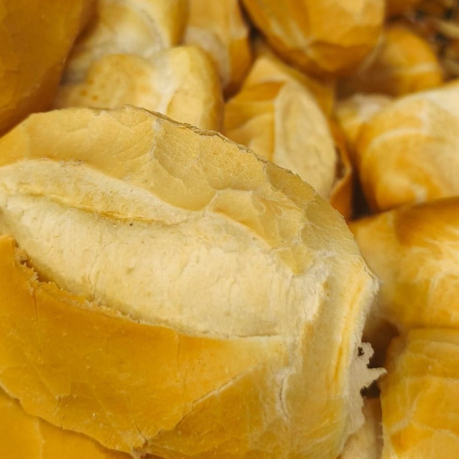 Pão doce macio, coberto com coco e açúcar. Sabor caseiro e irresistível, perfeito para o café ou lanche.