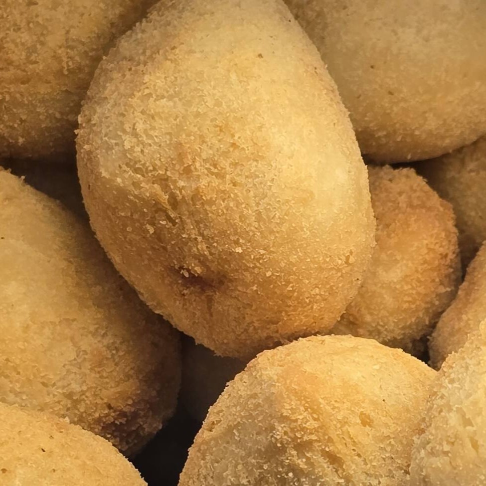 Bolinha de queijo frita, crocante por fora e com recheio de queijo derretido por dentro. Salgado clássico, ideal para lanche, petisco ou combo. Sabor caseiro que agrada a todos!