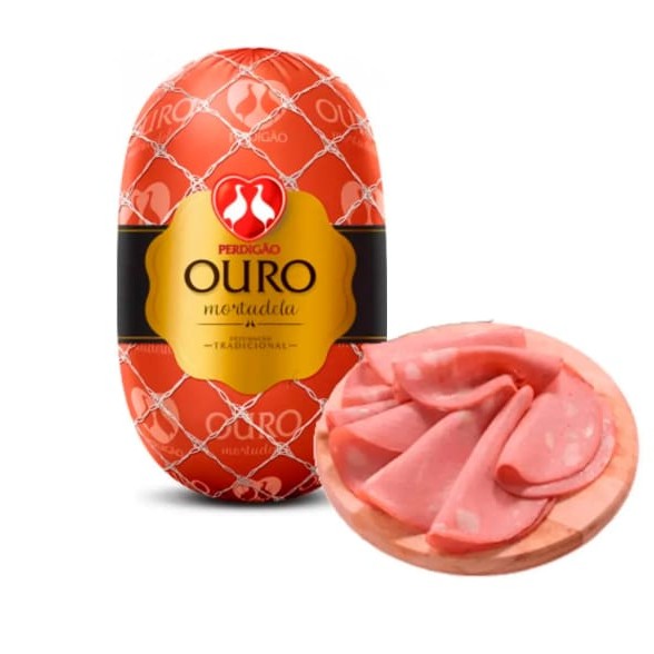 Mortadela Ouro Perdigão fatiada, sabor marcante e textura macia. Ideal para sanduíches, lanches e tábuas de frios. Qualidade e tradição em cada fatia.