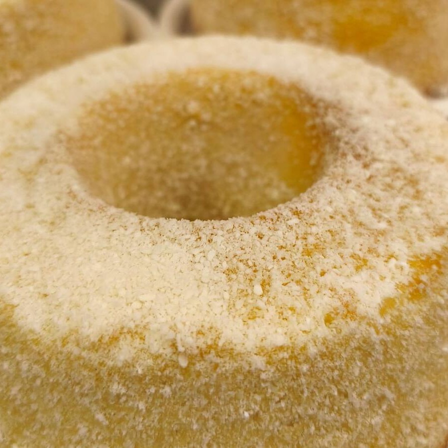 Rosca frita e macia, polvilhada com açúcar e canela. Textura leve, sabor caseiro e irresistível. Perfeita para o café ou lanche da tarde.
