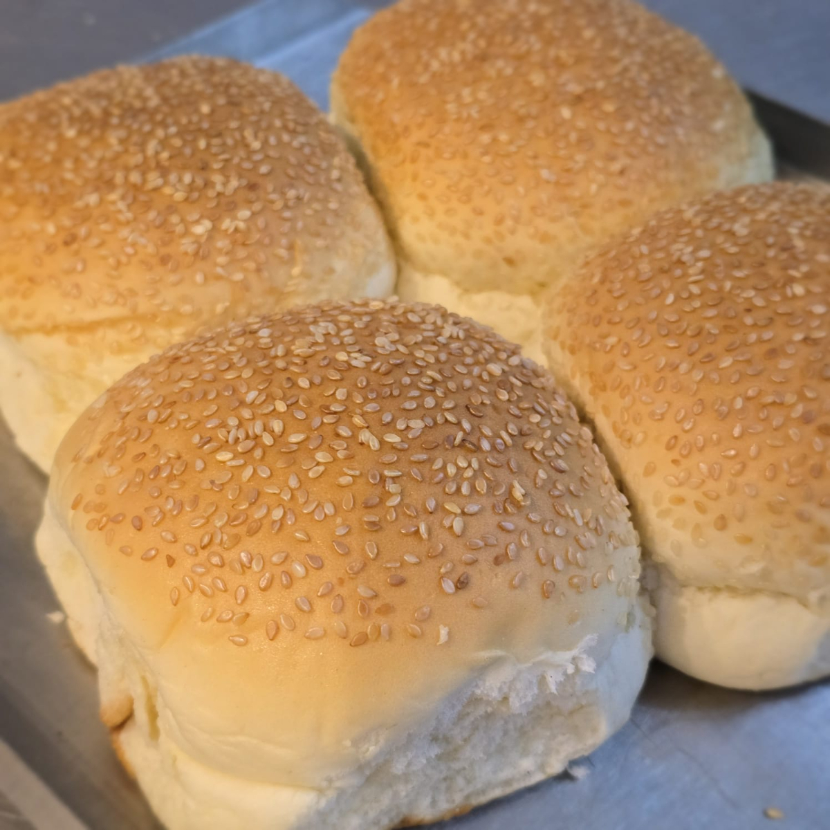 Pão macio, leve e com cobertura de gergelim, ideal para preparar hambúrgueres caseiros ou artesanais. Pacote com 4 unidades, direto da padaria para sua cozinha!