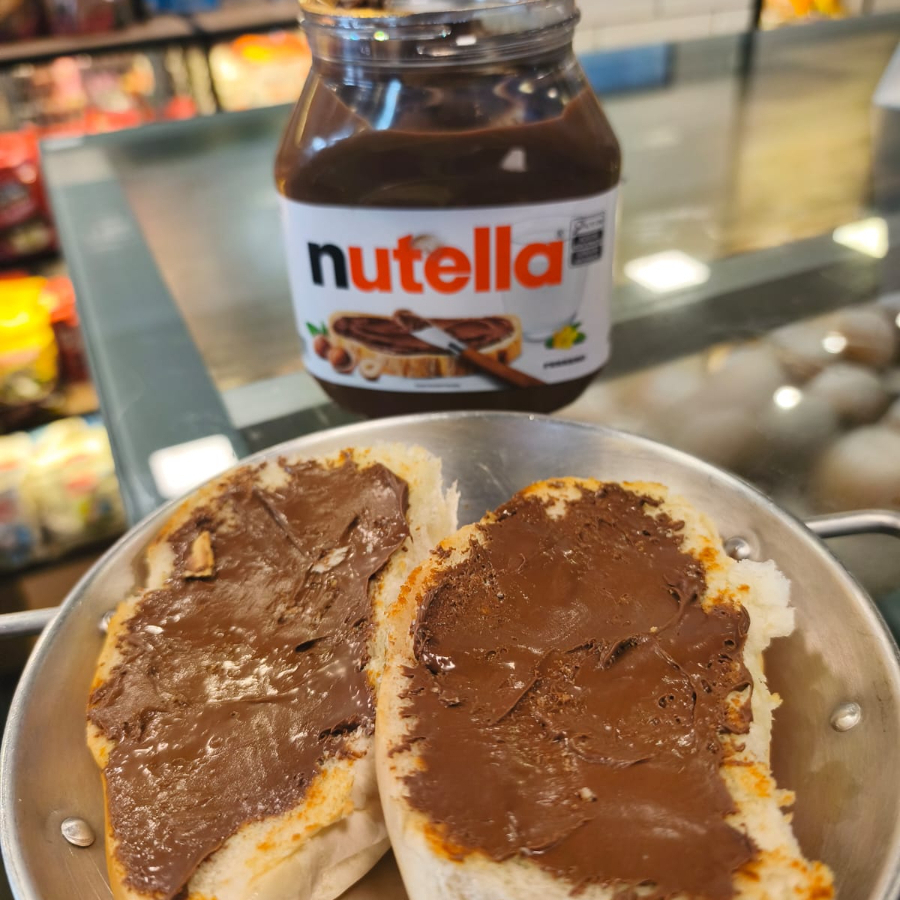 Pão francês fresquinho, aberto e passado com Nutella cremosa na medida certa. Simples, saboroso e perfeito para café da manhã ou lanche da tarde!