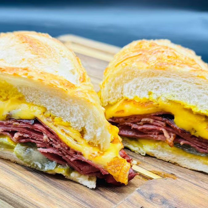 Picanha defumada, queijo prato, picles e mostarda
