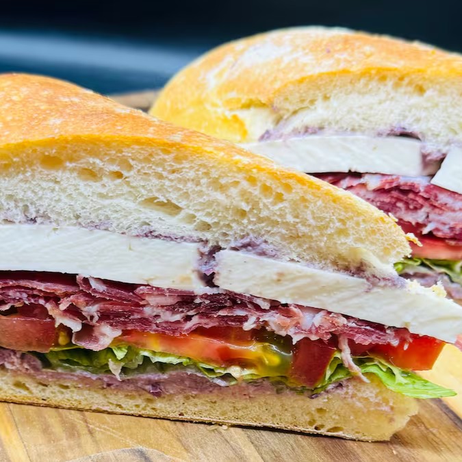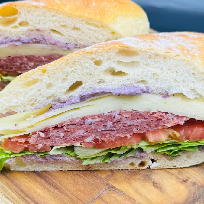 Salame italiano, provolone, patê de azeitona e salada