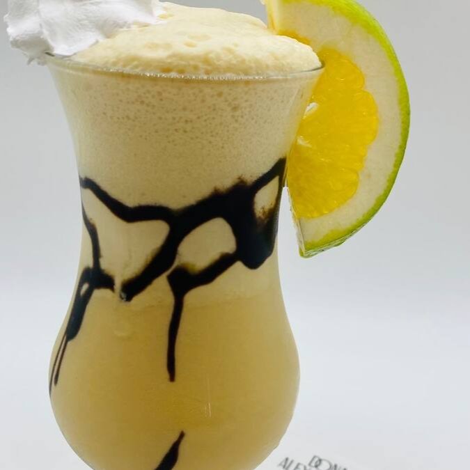 3 cubos de gelo de café, leite, 1 colher de creme de leite e chantilly