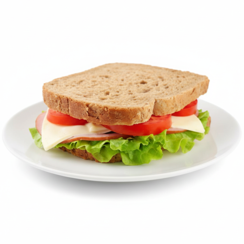 Peito De Peru, Queijo Branco, Alface e Tomate.