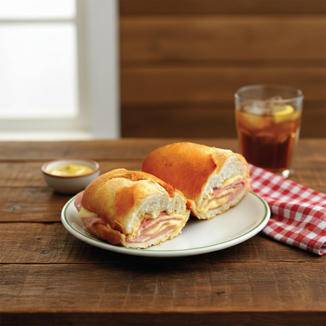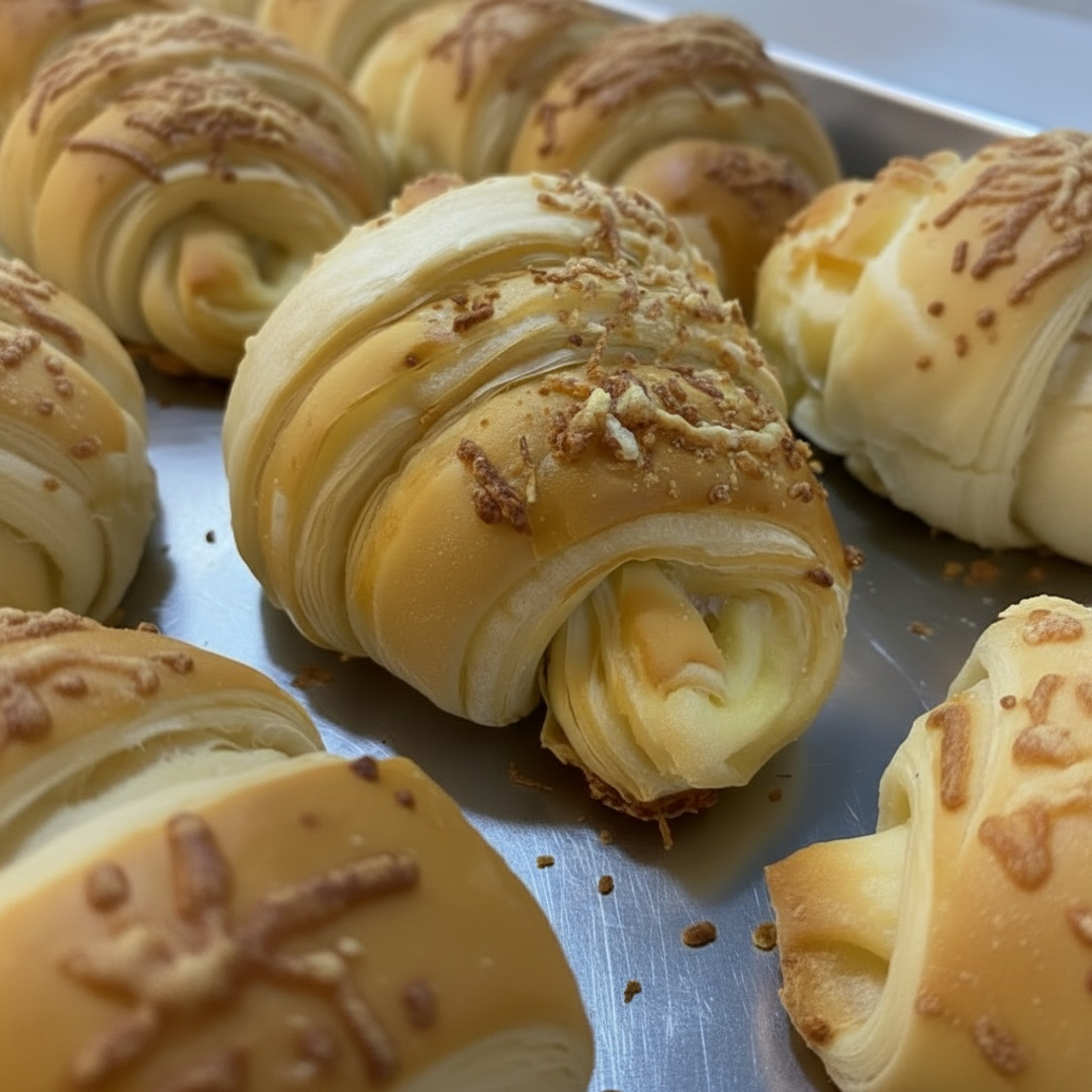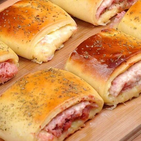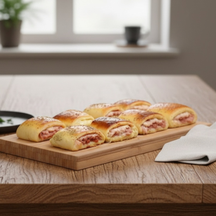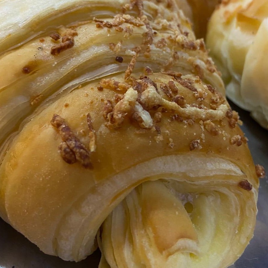 O 'Bauru Folhado' da nossa categoria de 'Salgados', é uma perfeição culinária, cuidadosamente elaborada com ingredientes de alta qualidade. Este delicioso prato apresenta uma combinação irresistível de generosas fatias de queijo derretido e presunto suculento, envolvidos por um tomate fresco e suavemente adocicado. Tudo isso é cuidadosamente assado em uma massa folhada dourada e crocante, que adic