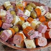 Porções temperaradas de 150gr de mussarela, presunto, queijo prato,mortadela,salame e azeitonas