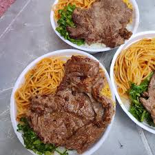 Acompanha arroz, feijão, macarrão e salada.