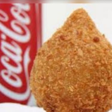 Deliciosa combinação de um salgado de padaria mais uma coca cola.