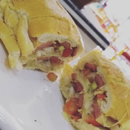 Calabresa, hambúrguer, bacon, ovo, cheddar, presunto, mussarela, alface e tomate