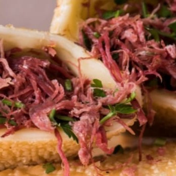 Carne seca, cebola, presunto, mussarela, alface e tomate