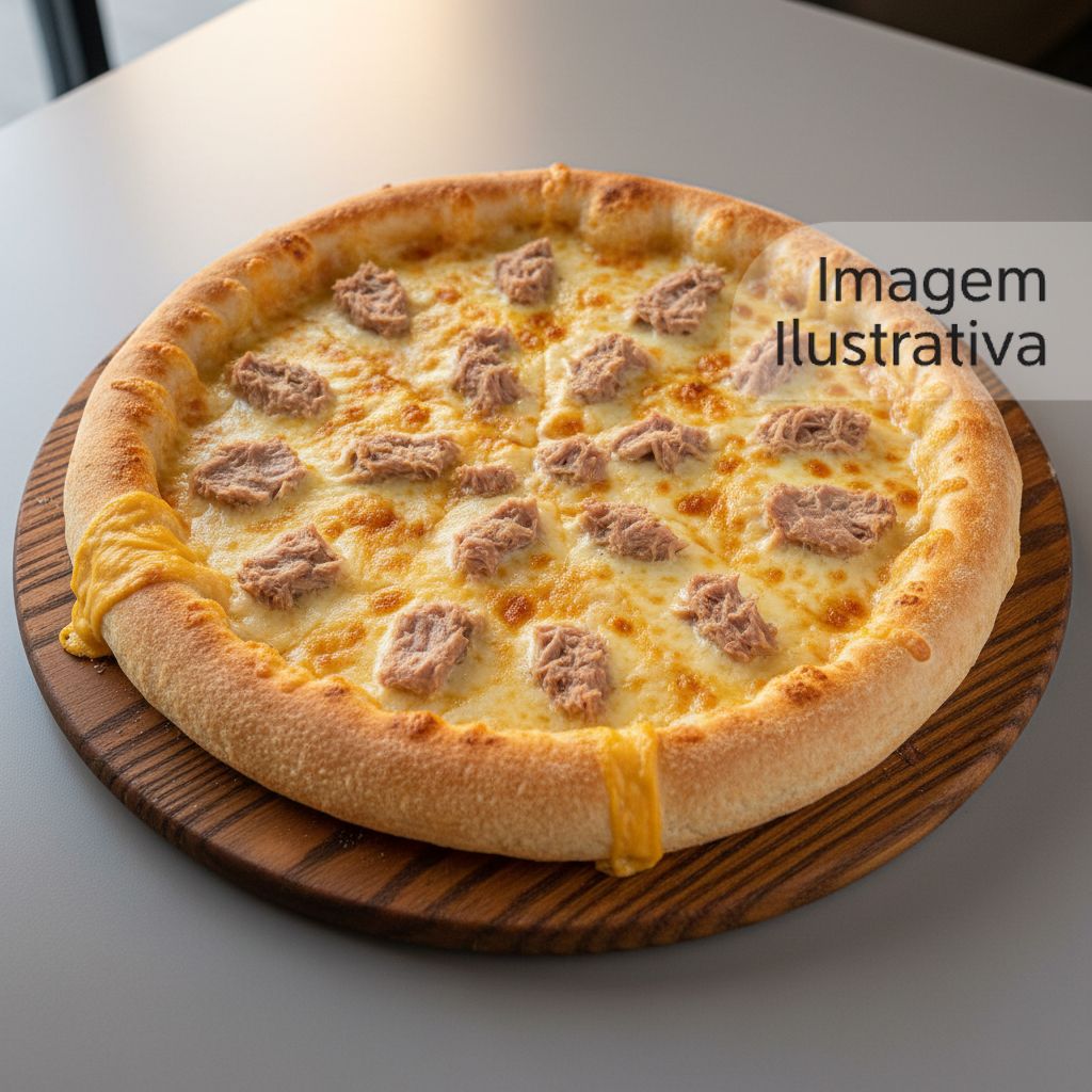 Atum, catupiry original, cebola, mussarela,presunto, alface e tomate e molho da casa