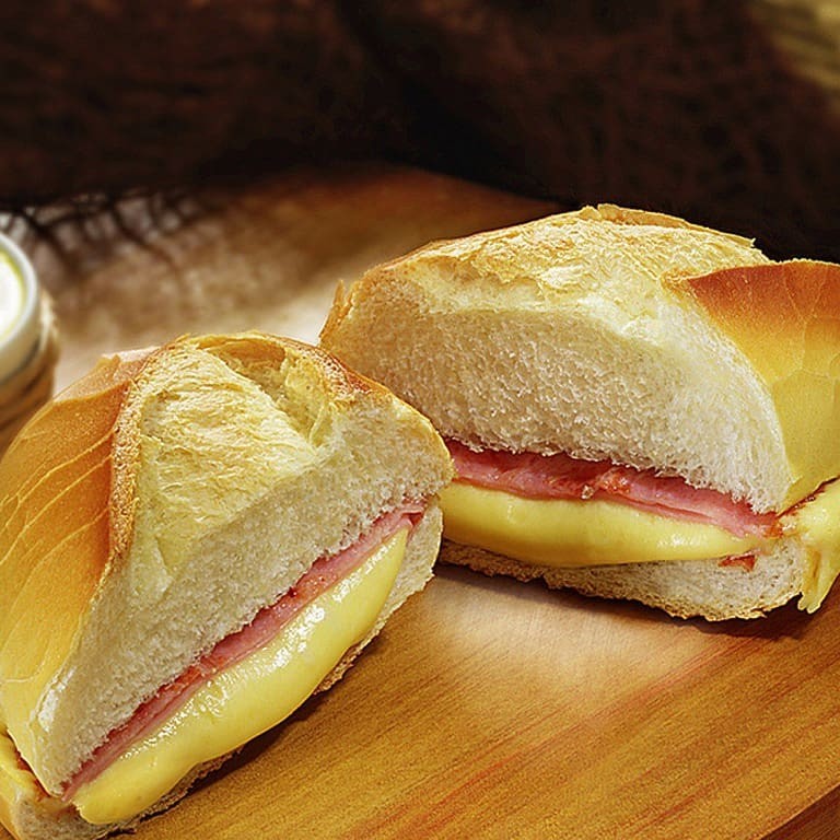 Pão de hambúrguer queijo prato, presunto,tomate, orégano e molho especial
