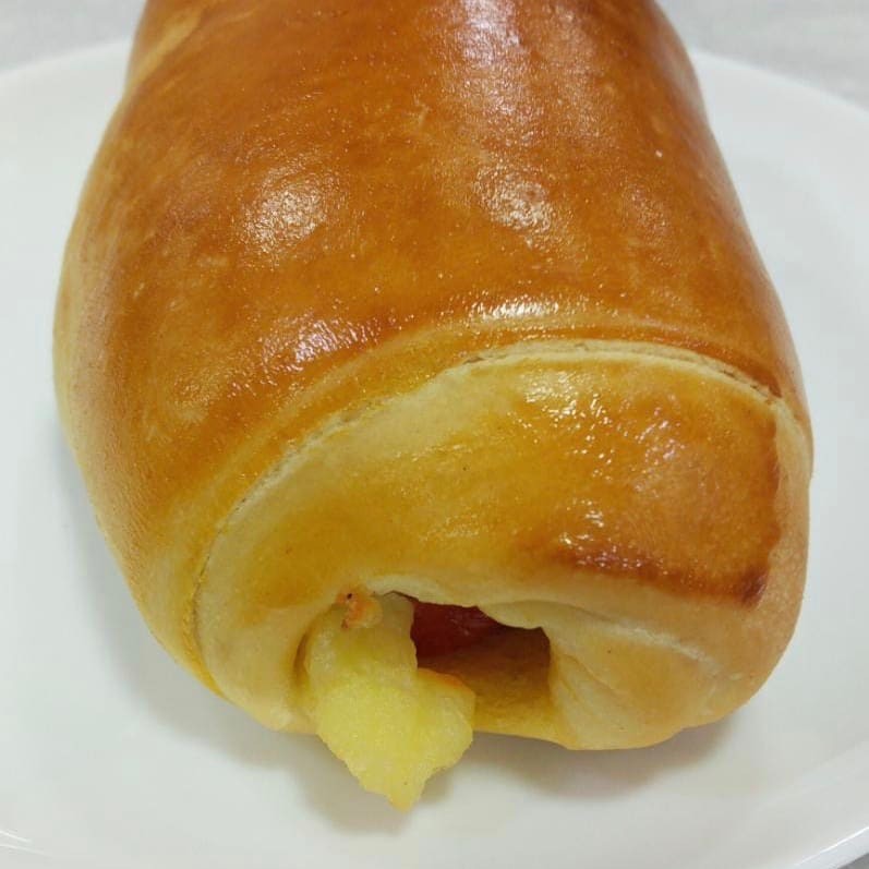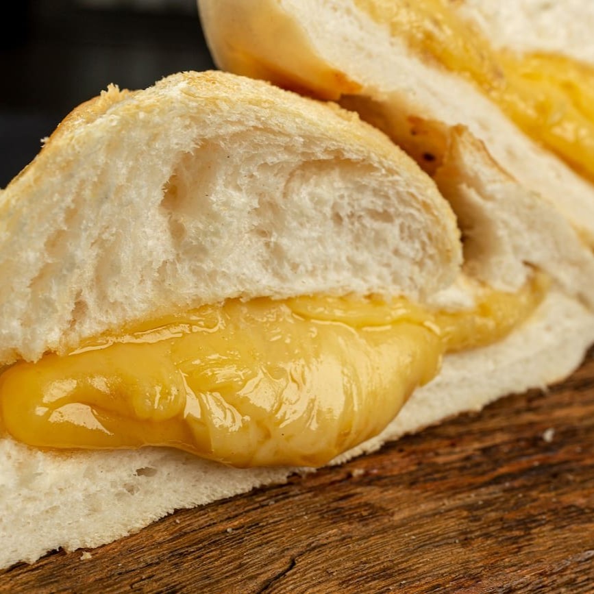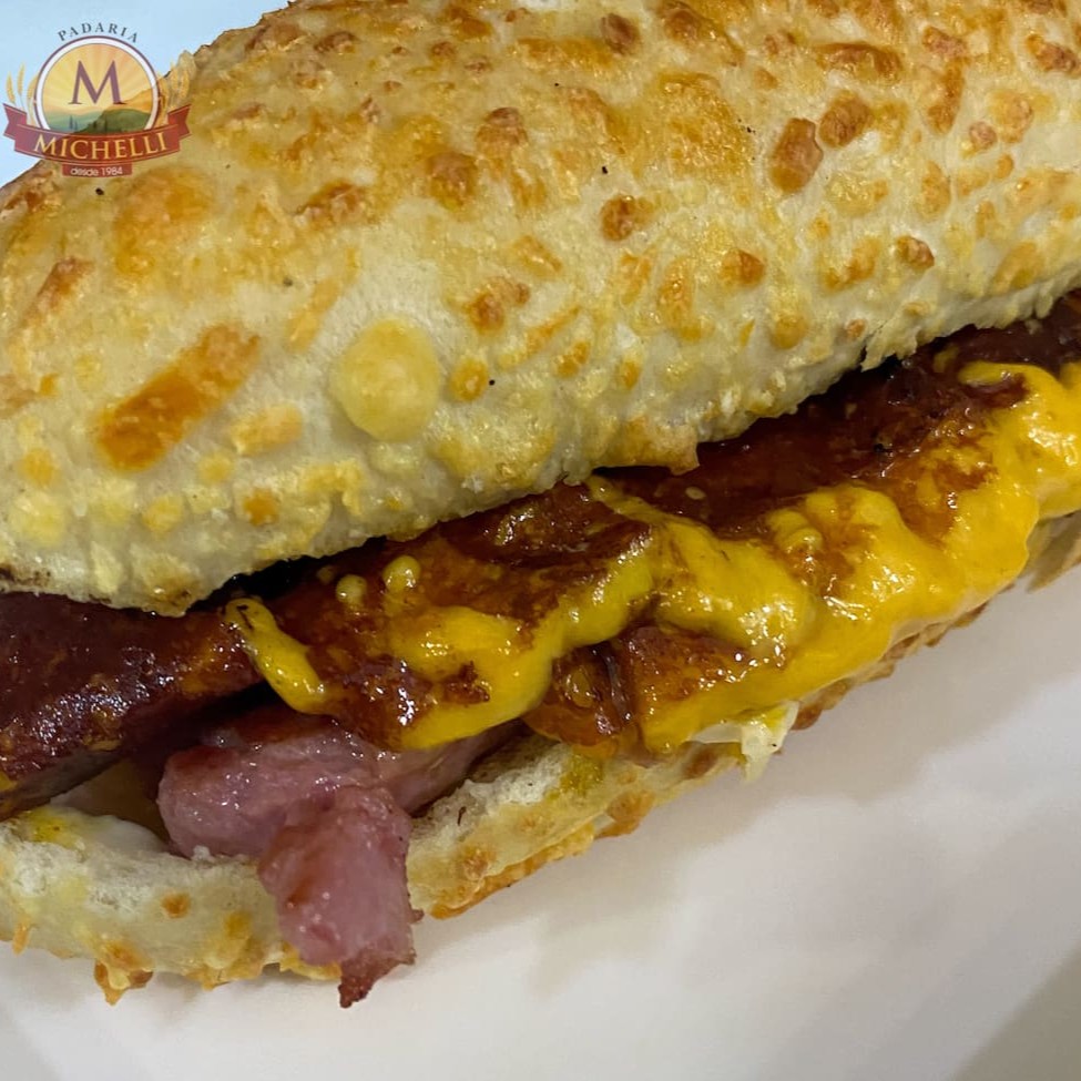 Baguete de parmesao , linguica calabresa fresca , queijo prato e maionese .