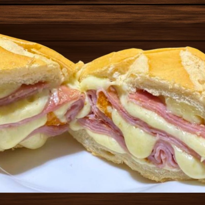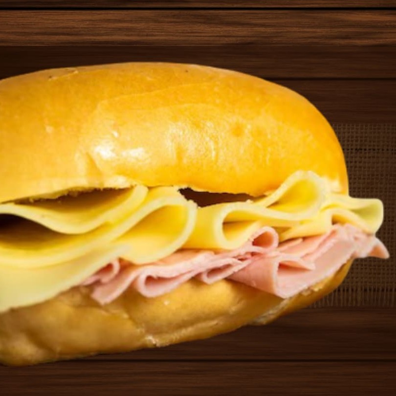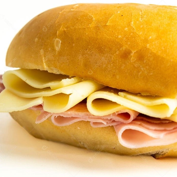 Pão francês, presunto e queijo.