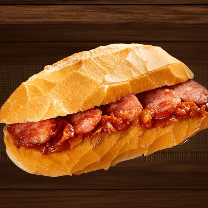 Pão francês e calabresa.