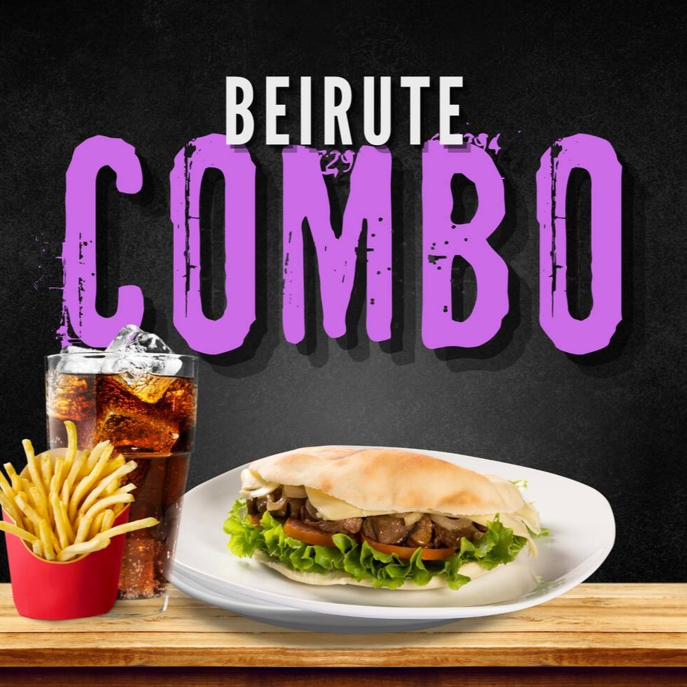Clássico beirute no pão sírio, recheado com contra filé grelhado, presunto, bacon, ovo, queijo derretido e salada fresca. Acompanha batatas fritas crocantes e uma Coca-Cola gelada (350ml).