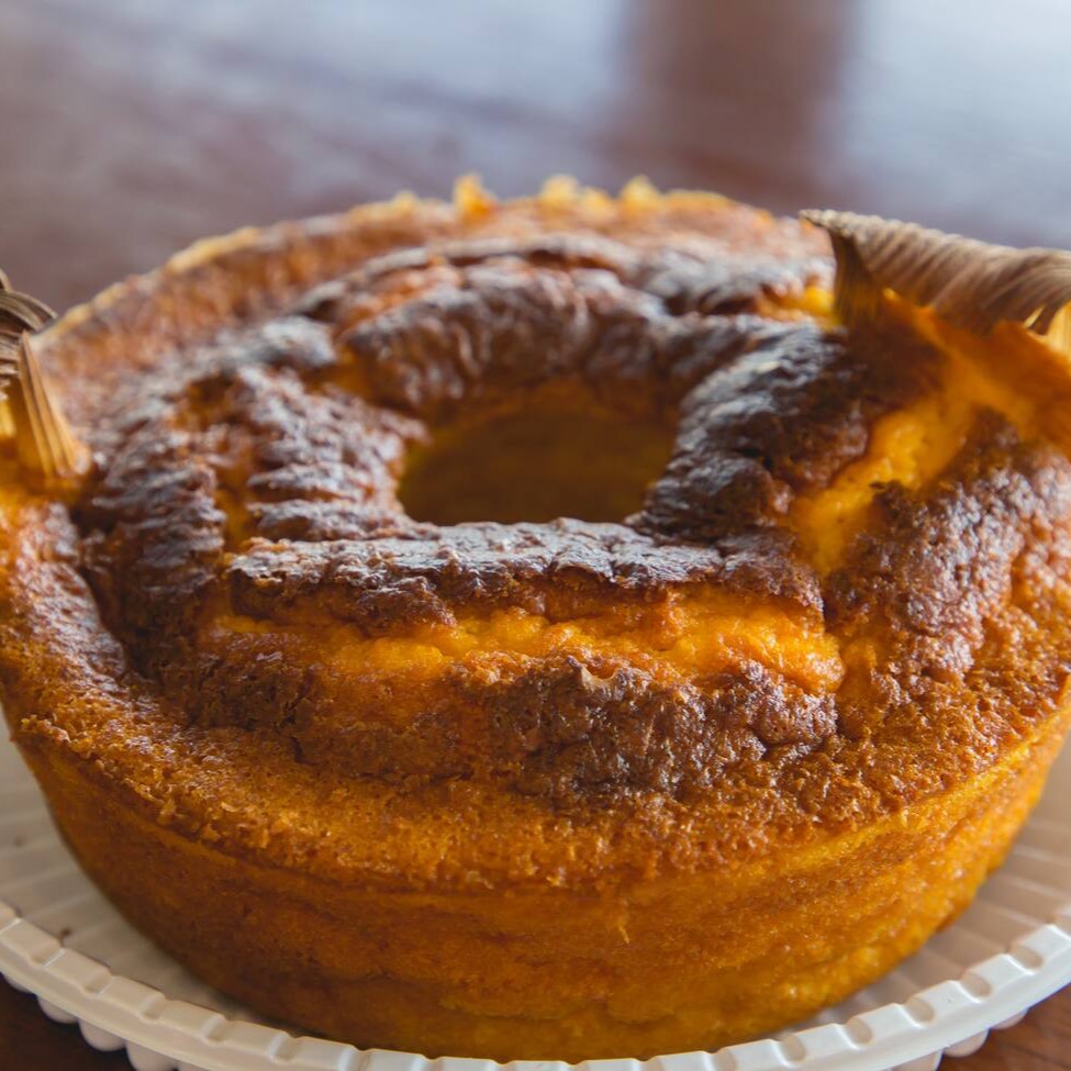 Nosso Bolo Caçarola é preparado com ingredientes selecionados, resultando em uma massa densa, úmida e levemente adocicada, com uma crosta dourada e saborosa que esconde uma surpresa em cada pedaço.
