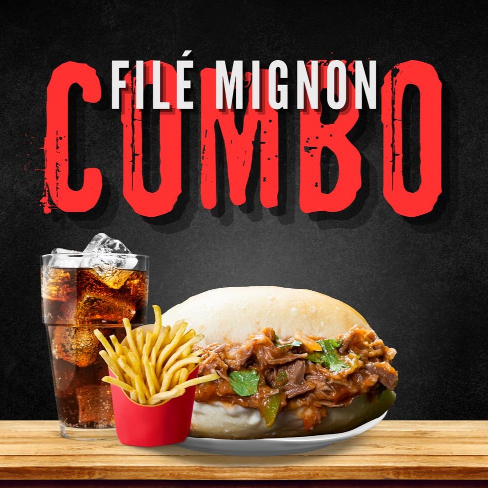Feito no pão francês ou baguete, generosamente recheado com filé mignon grelhado, queijo derretido e vinagrete fresco, acompanhado de batatas fritas crocantes e uma Coca-Cola gelada (350ml).