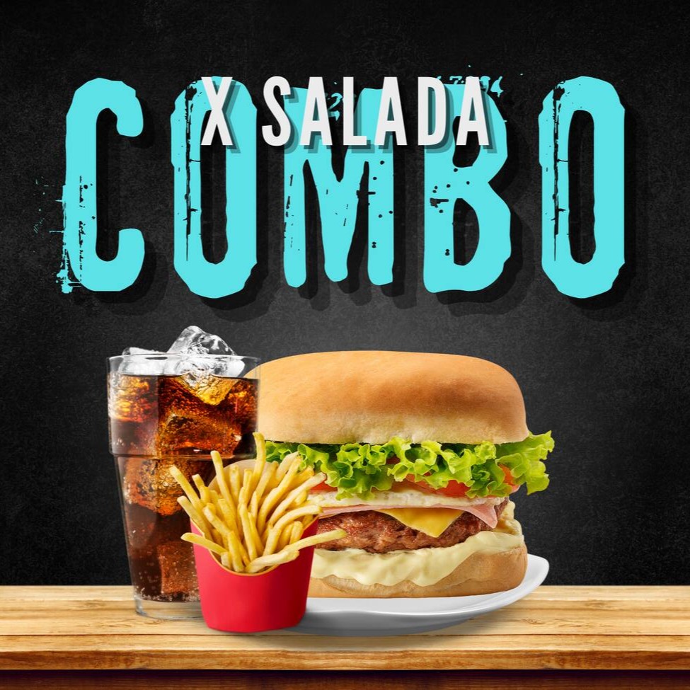 Combo - X-salada + Porção De Fritas + Coca Cola 350 Ml