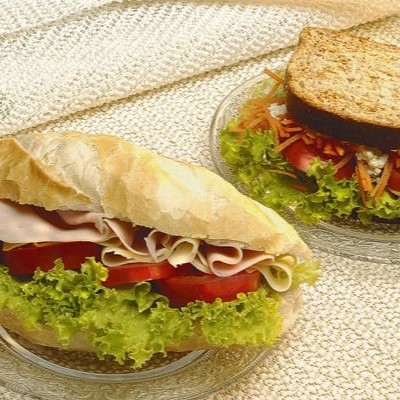 Queijo Branco , Peito De Peru ,Alface E Tomate .