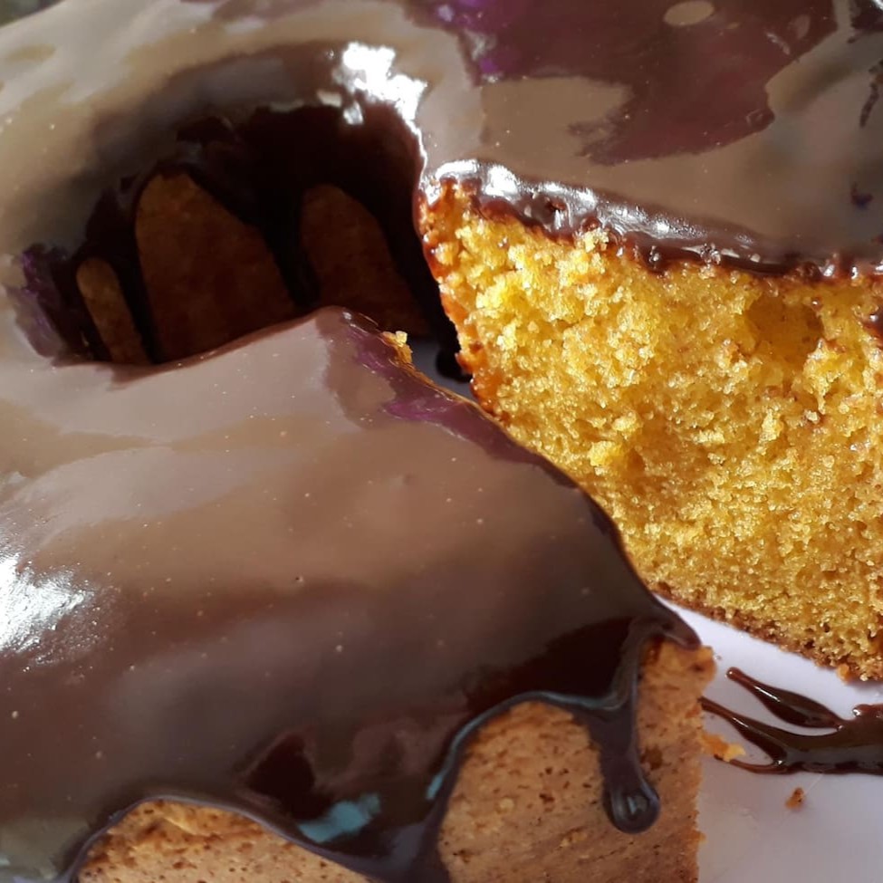 Bolo de cenoura artesanal com calda de chocolate