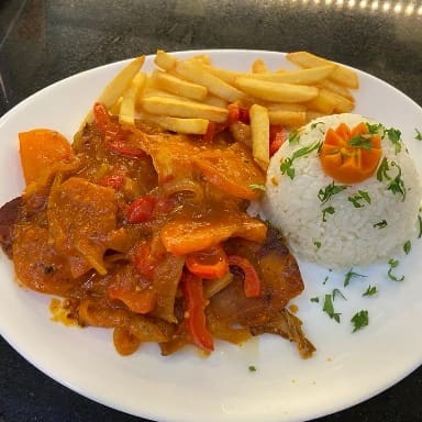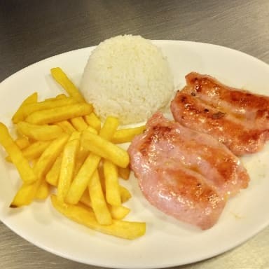 Tiras de contra filé, frango e calabresa acebolados. Acompanha vinagrete e pão fatiado. Aproximadamente 600g.