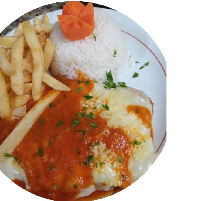 Acompanha um pão francês e parmesão ralado.