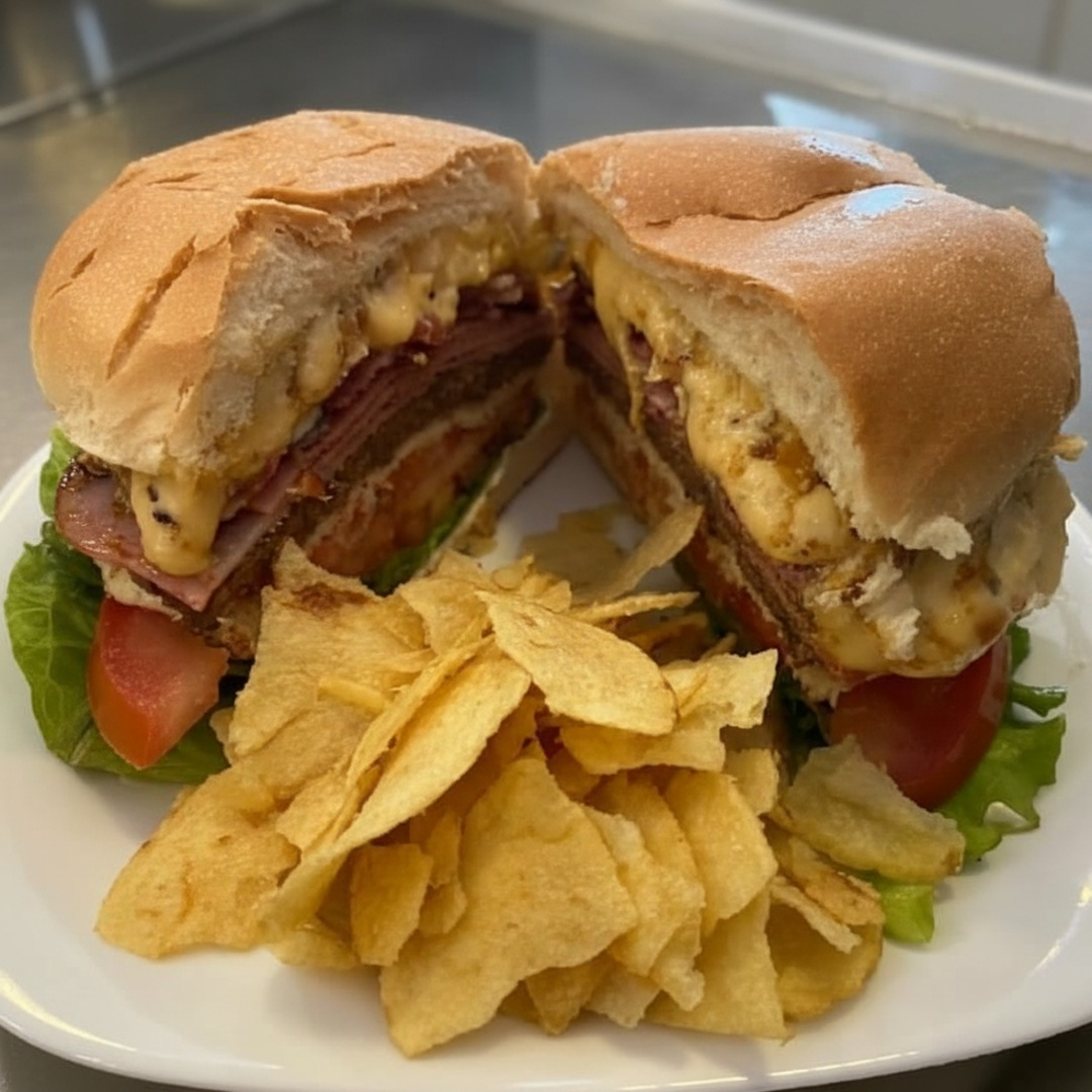 O Lanche de Metro Favos 2 é uma verdadeira exibição culinária. Composto por uma generosa camada de salame hamburguês de alta qualidade, equilibrado com a suavidade do queijo prato. Acompanha um saboroso patê de azeitonas, trazendo um toque mediterrâneo ao prato. A frescura do alface e a doçura do tomate adicionam um sabor saudável e refrescante. Tudo isso cuidadosamente acondicionado numa baguete simples, mas perfeitamente crocante. Este lanche é uma delícia que leva cerca de 40 minutos para ser cuidadosamente preparado. A foto é apenas ilustrativa, mas a realidade é ainda mais apetitosa!
