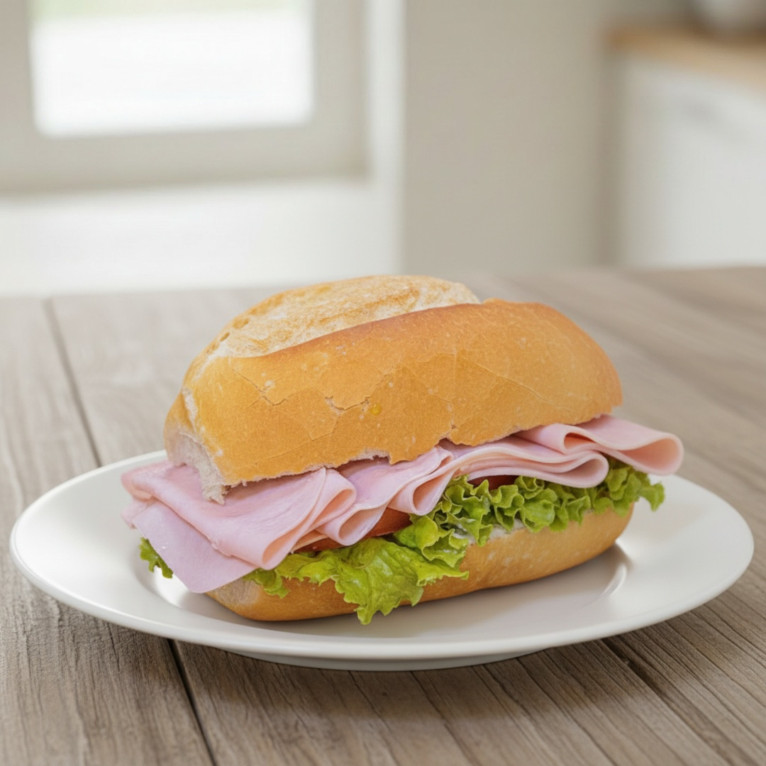 Sofisticado Lanche de Metro Favos 4, uma requintada combinação de saborosos ingredientes. Este lanche é cuidadosamente preparado com presunto magro, proporcionando um sabor suave e agradável, coberto por uma generosa camada de queijo prato. A maionese acrescenta uma nota cremosa, enquanto o alface e o tomate frescos adicionam uma crocância refrescante. Tudo isso é cuidadosamente montado em uma baguete simples, assada à perfeição. A imagem é apenas ilustrativa, mas o sabor é autêntico e inesquecível. Por favor, considere que o tempo estimado de preparo é de 40 minutos, garantindo que cada detalhe seja feito com a máxima atenção.