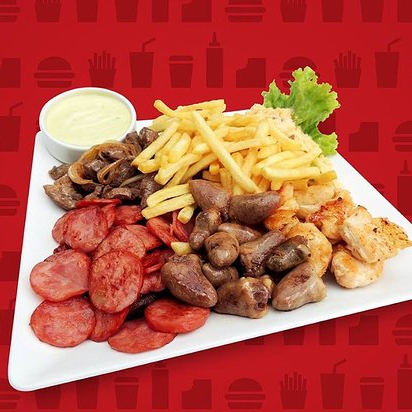 Frango macio em cubos, cozido em molho cremoso de creme de leite e ketchup, levemente temperado com alho, cebola e mostarda, servido com arroz soltinho e batata palha crocante.